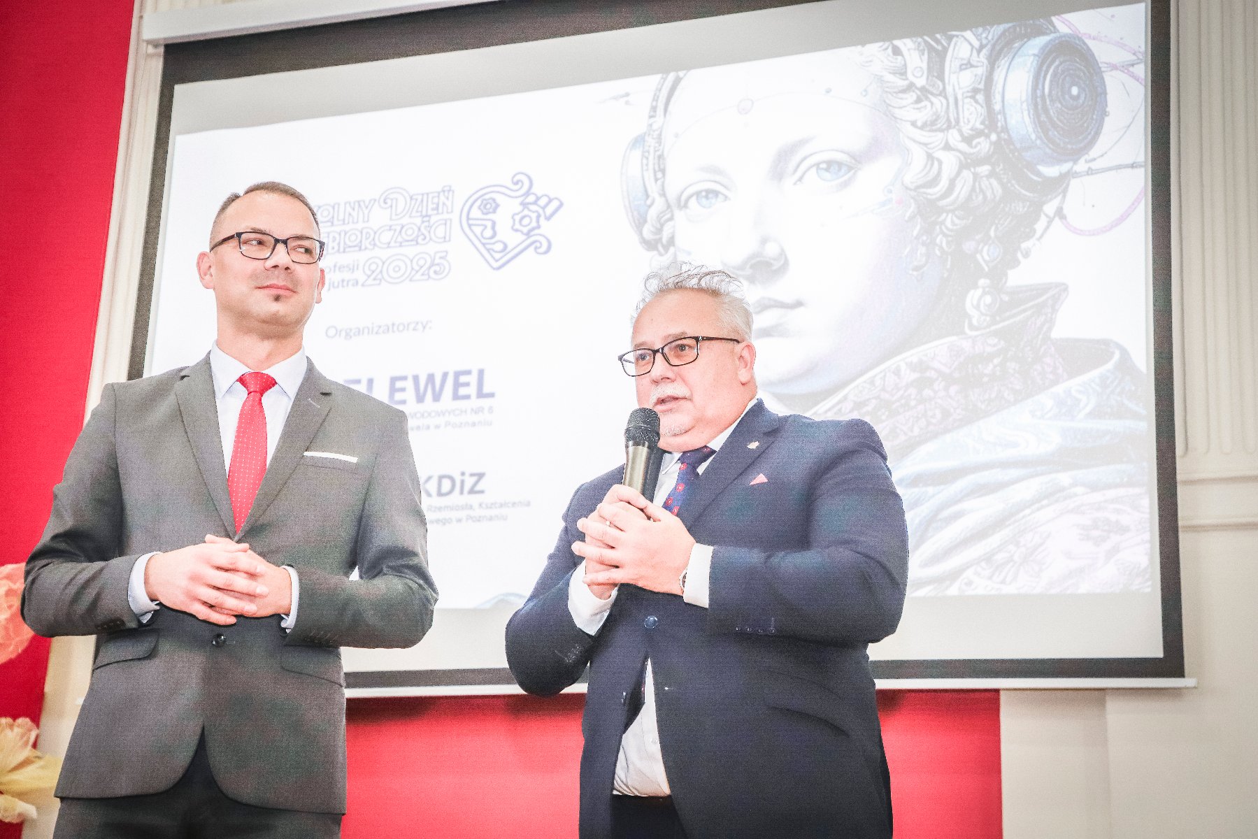Wydarzenie zaszczycili znakomici goście: Pani Dorota Kinal, Dyrektor Departamentu Edukacji i Nauki UMW, Pani Izabela Liebert-Jędroszkowiak, Wicekurator Oświaty, Pan Marek Meller, wizytator Kuratorium Oświaty, Pan Wiesław Banaś i Pani Katarzyna Plucińska, Zastępcy Dyrektora Wydziału Oświaty UMP, Pani Eliza Malarecka, kierownik Oddziału Projektów Edukacyjnych i Relacji Zewnętrznych, oraz Pani Paulina Taterka, inspektor Wydziału Oświaty. Obecni byli także partnerzy branżowi szkoły, m.in. przedstawiciele Wojewódzkiego Urzędu Pracy, Policji, PSP, Centrum Doradztwa Zawodowego dla Młodzieży oraz WSCKZiU nr 1 w Poznaniu, a także pracownicy naukowi współpracujących uczelni.
