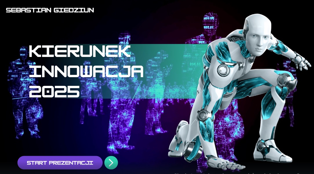 To jednak nie koniec sukcesów! Pan Sebastian Giedziun został również laureatem ogólnopolskiego konkursu "Kierunek - Innowacja 2025" w kategorii nauczycieli szkół ponadpodstawowych. Celem konkursu było zaprezentowanie działalności innowacyjnej w edukacji z wykorzystaniem kreatora dostępnego na Zintegrowanej Platformie Edukacyjnej.